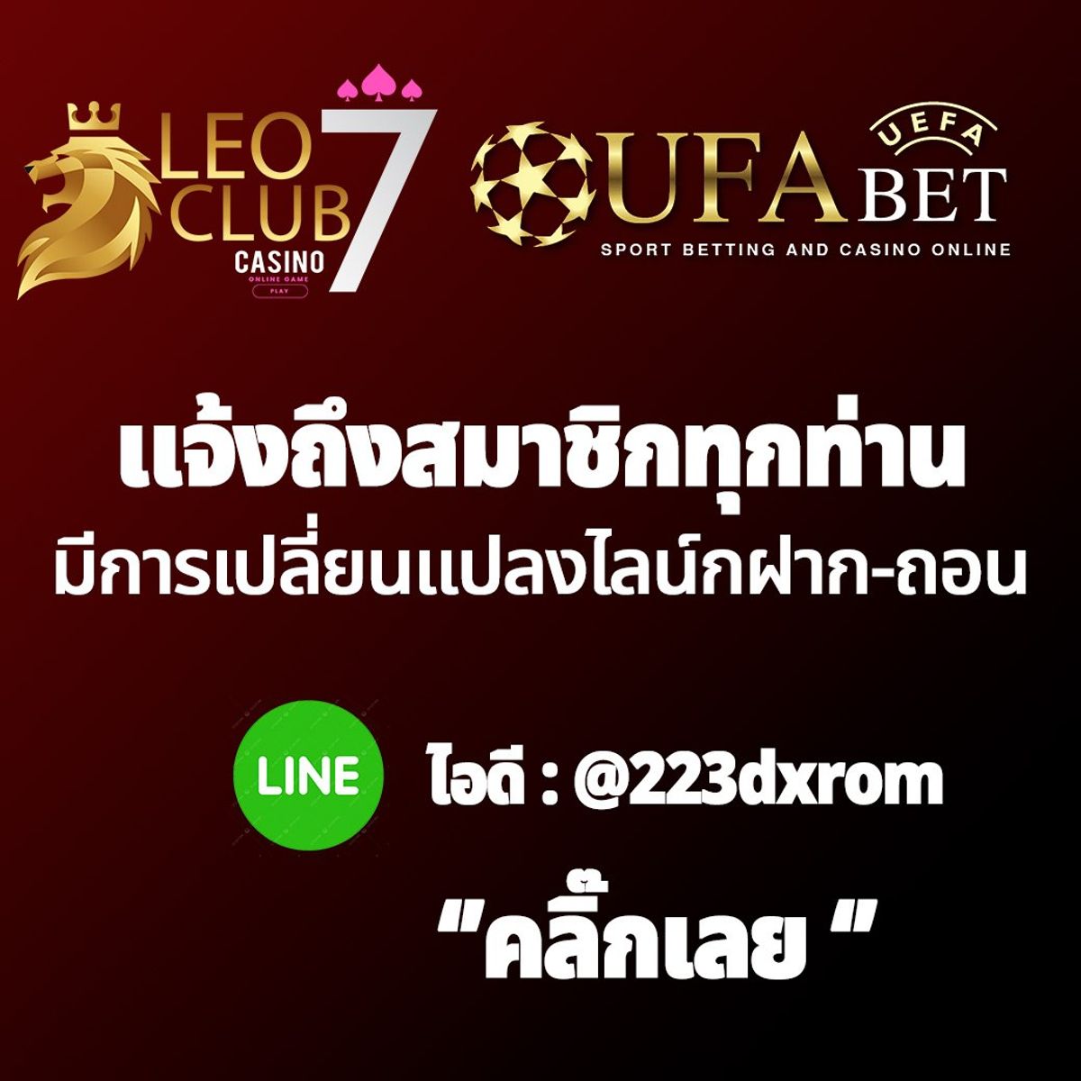 แจ้งสมาชิกทุกท่าน มีการเปลี่ยนแปลงไลน์ ฝาก -ถอน ID LINE : @223dxrom